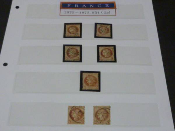 フランス 切手◆80 1870-1873年 SC#51 2c 7枚 使用済