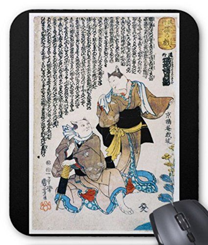 ● 江戸時代の江戸にて活躍した世界的に有名な浮世絵師、歌川国芳( 1798~1861年)の歌舞伎のパロディー画、『 流行猫の戯 - 道行 猫柳婬月影(ねこやなぎさかりのつきかげ)』で作った 最高級マウスパッド です(歌舞伎の「梅柳對相傘」(うめあなぎついのあいがさ)のパロディです)。歌川国芳や猫が大好きな、あなたのために作りました。