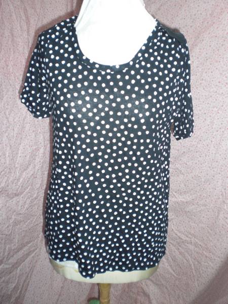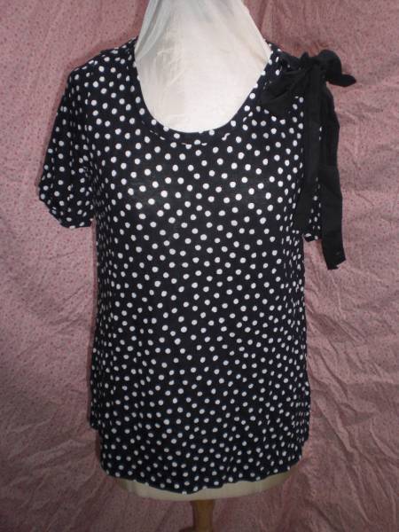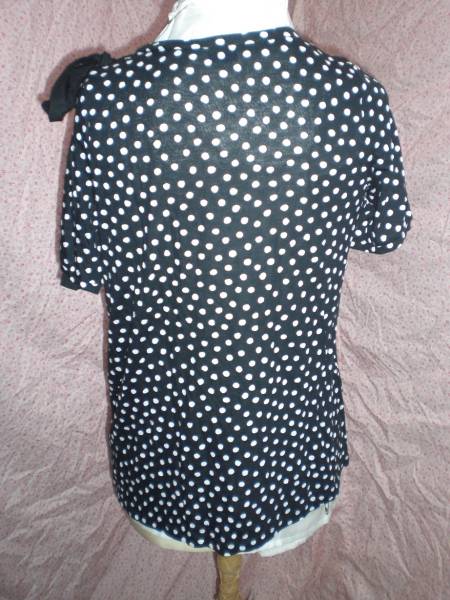 ka 美品☆即買♪cuff 黒 白水玉ドット 肩リボン付き 半袖Tシャツ