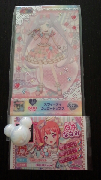 プリパラのミルフィーコレクション、スウィーティシュガーシリーズの、トップス、ボトムス、シューズのセットです。らぁらのトモチケとななみちゃんのトモチケもお付けしますので、是非お揃いコーデをお楽しみ下さい!新品未使用です。