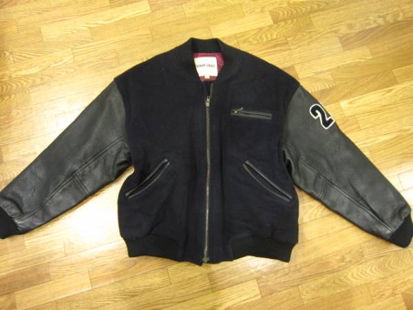 スタジアムジャンパー です。色は黒です。胴部はメルトン地で、袖は牛革です。CLAUDE CROSSとあります。サイズS相当です。実寸より判断下さい。肩幅約55cm、袖丈約50cm、着丈約59cm、身幅約55cmです。中古品に付き、使用感ありますが、比較的きれいな方だと思います。神経質な方は入札をお控えください。ノークレーム・ノーリターンでお願いします。発送は、ヤフネコパックを予定しています。