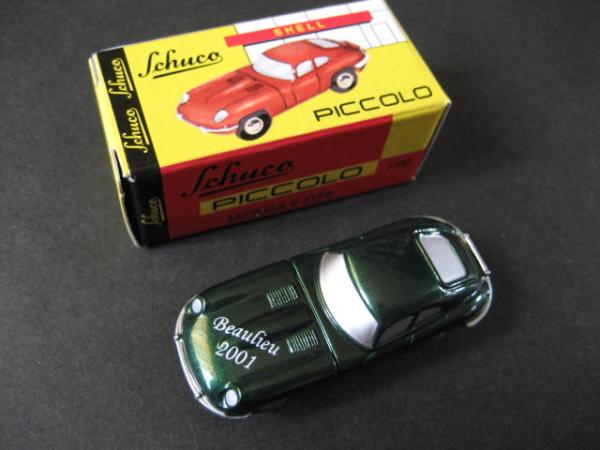 シュコー・ピッコロジャガーEタイプ限定品です。 ドイツのシュコー社のピッコロシリーズは、小さなミニカーですが、金属の塊で製作されており、ずっしりと重量があり、大人のミニカーとして人気があります。この商品は限定商品で、グリーンメタリックのジャガーEタイプのボンネットには「Beaulieu 2001」とマーキングがあります。2001年に全世界で限定1000個のみが発売、今では入手が大変困難な商品だと聞いております。ジャガーファンの方やピッコロコレクターの方にお譲りしたいと思います。発送は定形外郵便にて発送することも可能です。※この商品の他にも珍しいオートモビリアグッズやジャガーコレクションを多数出品しておりますので、よろしければその他の商品もご覧下さい。