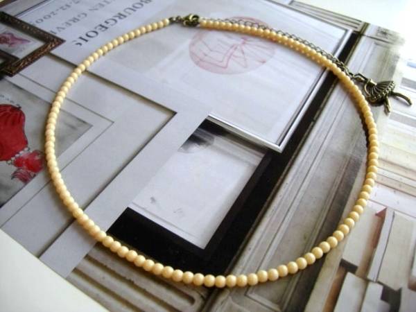 セシル・スタイル・・シリーズです♪やさしいベージュ・・シックなアンティークビーズのネックレスです♪4ミリ位のアンティークビーズのネックレスは長さ45センチ+アジャスター10センチで最長55センチ位です♪お揃いのブレスレットやネックレスも出品しています♪シンプルでいつまでも着けられるデザインを考えて作り ました!ハンドメイドをご理解頂いてノークレーム、ノーリターンでお願いします