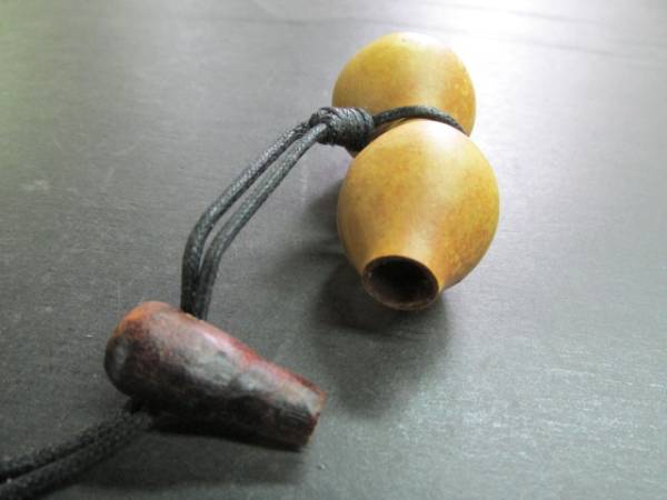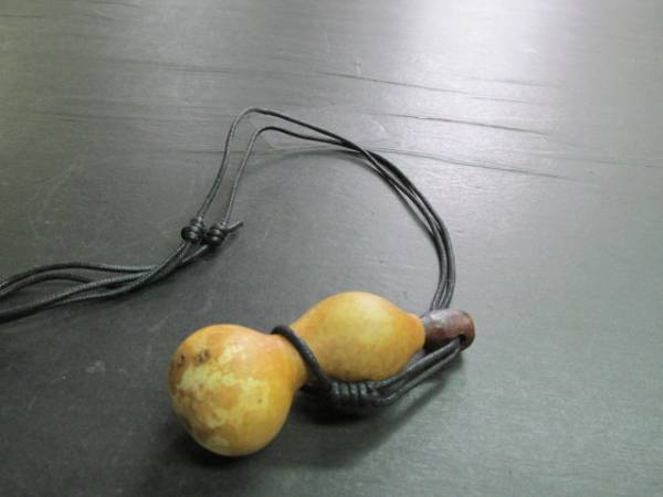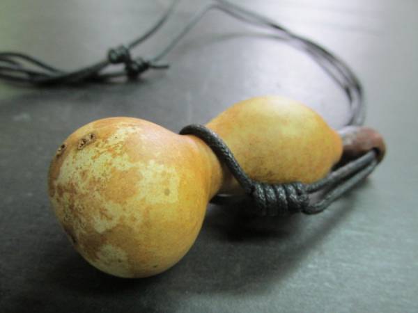自然に美しい柄の入った豆瓢箪を見つけ乾燥させて中の種を奇麗にくり抜いて小さな物を収納出来るカプセルを作りました。例えば緊急時に使う薬であったり、又思い出に繋がるお守りであったりするものを収納してください。仕上げは色の付かないポリウレタン仕上げに致しました。