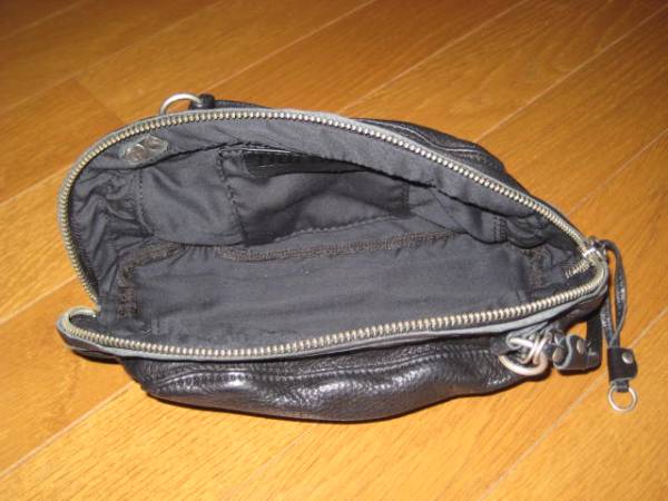 ジッパーで開閉でき、細いレザーハンドルが付いてます。