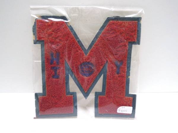 ビンテージ ワッペン 「M」 レターパッチ 赤×紺 USA雑貨 16×16cm
