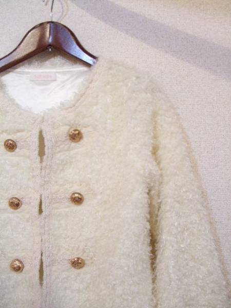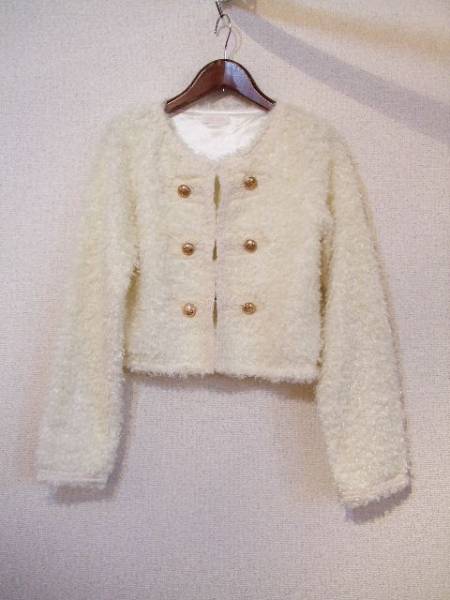 | 商品紹介 | クラシックな形がオシャレなジャケットです。 やや毛足の長い白い ボアがかわいいです。 軟らかい素材で裏地も付いているので着やすいです。 《素材》 表地・裏地:ポリエステル100% |