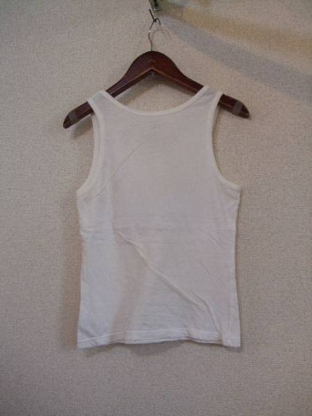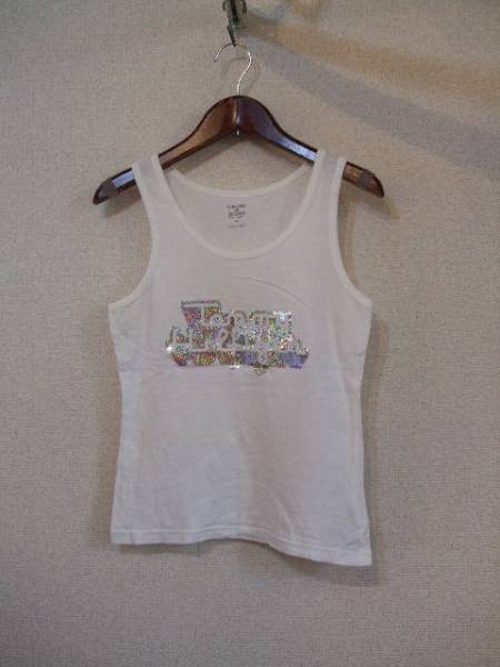 商品紹介 | シルバーラメでブランドロゴをくりぬいたプリントが入った タンクトップです。 色は白です。 プリント部分はやや厚めのシールのような物を貼り付けています。 《素材》 綿100% |
