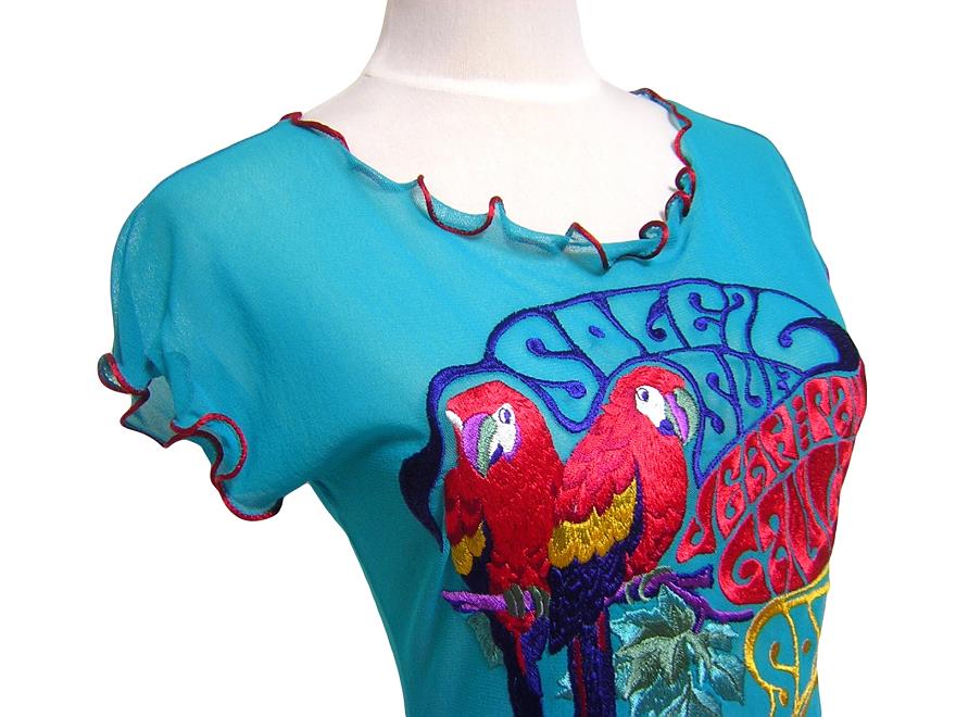 Jean Paul GAULTIER SOLEIL の イタリア製、 刺繍チュールトップスでございます。 伸縮性あり/透け感あり | |