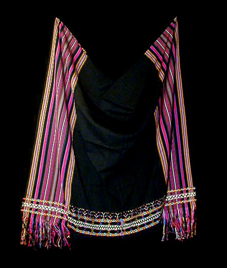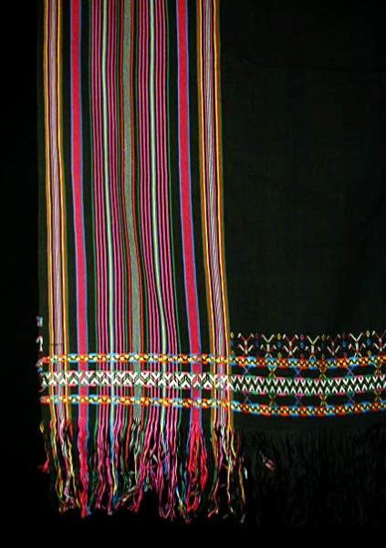 写真は、そのコンテストで見事入賞した作品です。織ったのは南東アロール郡モル村に暮らす24歳の女性ハリマ・ボリン(Halima Boling)さん。もちろんストールとしても応用できます。サイズは約106 X 196cmで、フリンジ部は約16cmです。尚、綿糸は工場産で、糸の染めは化学ものです。