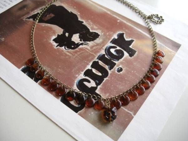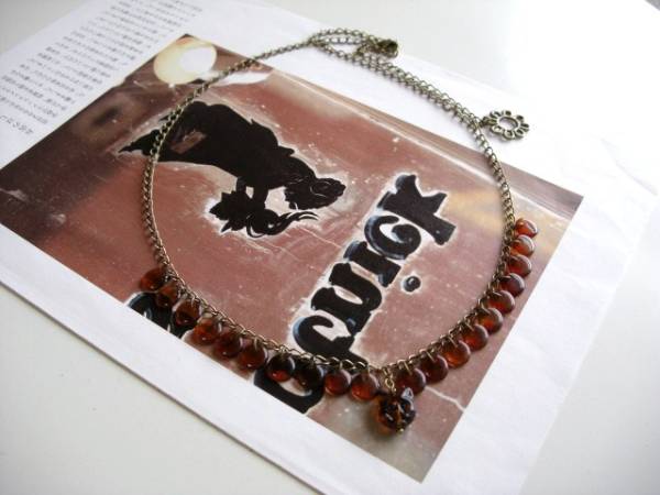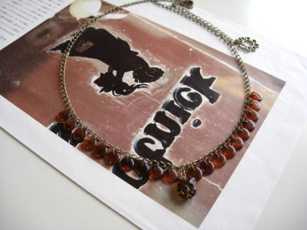 初夏の物語・・シリーズです♪お澄まし猫さん・・琥珀色の樹脂ビーズとチェコの猫さんのネックレスです♪8ミリ位のコインの樹脂ビーズに12ミリ位のチェコの猫さんを合わせました♪琥珀色でまとめてロマンチックな表情です♪長さは全長70センチ位で調節自由です♪お揃いのブレスレットも出品しています♪ハンドメイドをご理解頂いてノークレーム、ノーリターンでお願いします