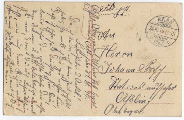 1916年 ドイツ 古い実逓はがき 1次大戦 軍事郵便◆p-60