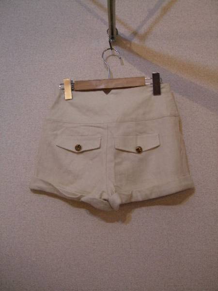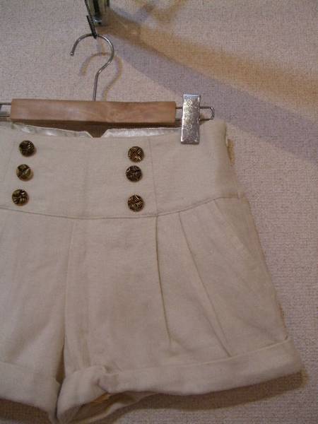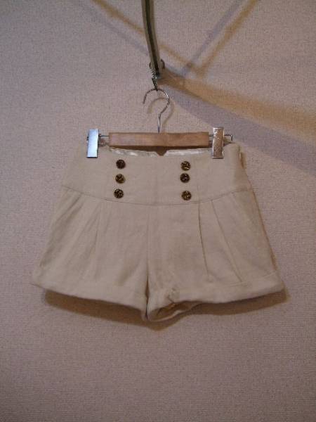 商品紹介 | ウエストのゴールドのボタンがデザインのポイントになった ショートパンツです。 白なので他のアイテムと合わせやすいです。 《素材》 表地:ウール60% レーヨン40% 裏地:ポリエステル100% |
