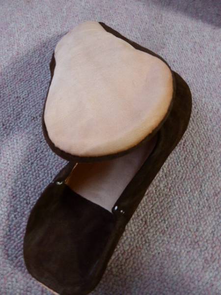 かかと部分は叩いて接着してありますのでスリッパのようにはいてください