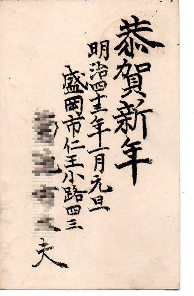 t0773★明治「盛岡43.1.1前0-6 」年賀印