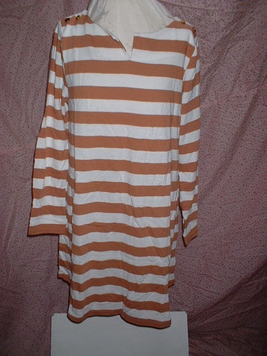 kk 即決☆Jayro 茶 白 ボーダー チュニックワンピ シンプル ルームウエア― 部屋着に