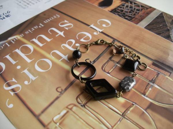 愛らしさのスパイス・・シリーズです♪オニキス・レシピ・・キュートなオニキスのブレスレットです♪丸玉やリング、菱形やスクエアなどデザイン違いのオニキスにスモーキークォーツやグレイジャスパーやデザインリングを合わせてニューヨークモダンしています♪オニキスは8ミリから25ミリ位までの丸玉やリング、スクエアや菱柄です♪長さは全長23センチ位で調節自由です♪お揃いのネックレスも出品しています♪シンプルで飽きのこないいつまでも着けられるデザインを考えて作りました!ハンドメイドをご理解頂いてノークレーム、ノーリターンでお願いします