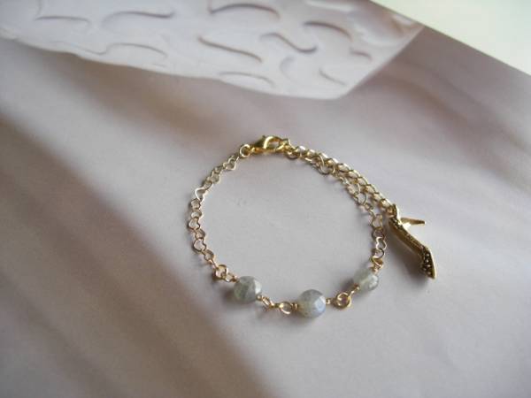 6月の花嫁・・シリーズです♪神秘的なラブラドライトのブレスレットです♪コインカットのラブラドライトは青白いシラーが神秘的な表情です♪さりげなく華やかな石なのでシンプルなデザインにしました♪6ミリから8ミリまでのコインカットのラブラドライトに小さなハートのデザインチェーンを合わせました♪長さは全長23センチ位で調節自由です♪お揃いのネックレスやピアスも出品しています♪♪シンプルで飽きのこないいつまでも着けられるデザインを考えて作りました!ハンドメイドをご理解頂いてノークレーム、ノーリターンでお願いします