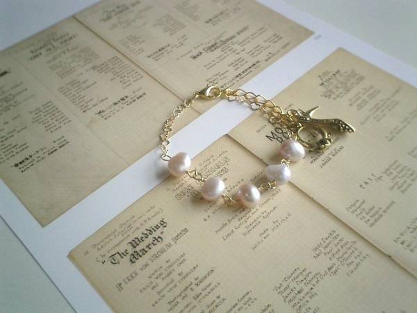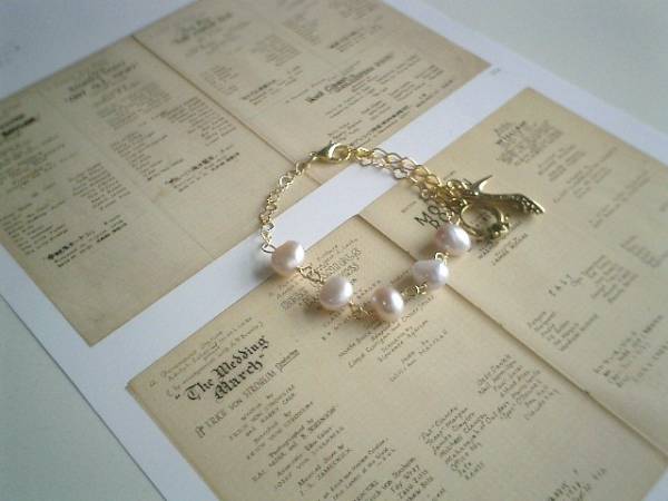 やさしい春色・・シリーズです♪パール・コレクション・・ふんわりやさしいベージュピンクの淡水パールのブレスレットです♪バロックの淡水パールに小さなハートのデザインチェーンを合わせて可憐な表情です♪9ミリから10ミリ位のバロックの淡水パールにハートのチェーンを合わせました♪長さは23センチ位で調節自由です♪お揃いのネックレスも出品しています♪シンプルで飽きのこないいつまでも着けられるデザインを考えて作りました!ハンドメイドをご理解頂いてノークレーム、ノーリターンでお願いします