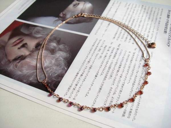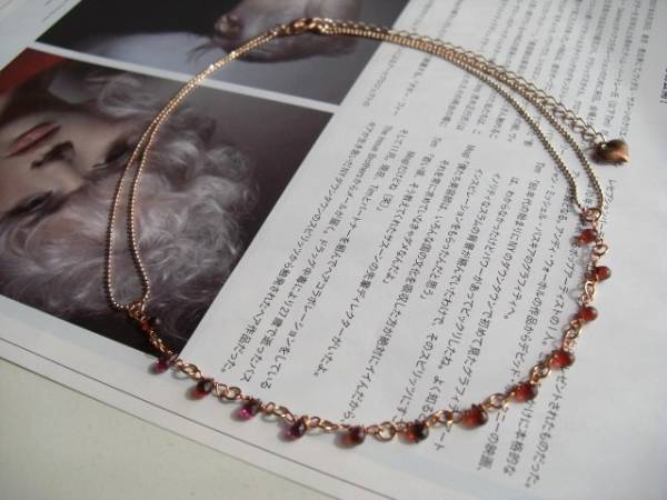 切ない恋・・シリーズです♪シックな恋・・深い赤のガーネットのネックレスです♪ドロップカットのガーネットにピンクゴールドのボールチェーンを合わせてひっそり華やかです♪ガーネットは5×3ミリ位です♪長さは42センチ+アジャスター13センチで最長55センチ位です♪♪お揃いのブレスレットも出品しています♪♪シンプルで飽きのこないいつまでも着けられるデザインを考えて作りました!ハンドメイドをご理解頂いてノークレーム、ノーリターンでお願いします