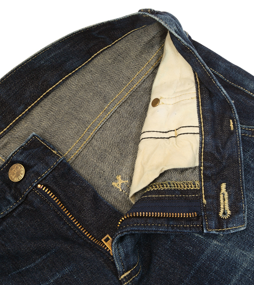 通常デニムはあやめが右上がりに入る右綾が主流であるため逆綾と呼ばれることもある。この綾目の方向が、LEE独特の色落ちに深く関係しています。