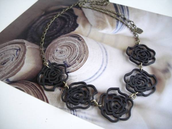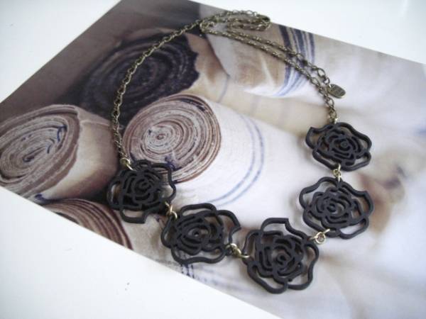 幻想・セレクション・・シリーズです♪漆黒の黒・・ウッドの薔薇・・シックな秋色のネックレスです♪35ミリ位のウッドの薔薇はデザインチェーンを合わせました♪長さは全長67センチ位で調節自由です♪チョーカー風にされても可愛いです♪お揃いのネックレスやブレスレットも出品しています♪シンプルで長く着けられるデザインを考えて作りました!ハンドメイドをご理解頂いてノークレーム、ノーリターンでお願いします