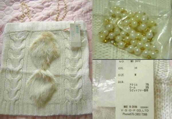 タグ付き・未使用◆パリッシュPalis/リアルファー付きキャミソール◆白M/長期保管品