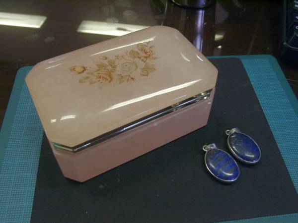 | ★:レア?薄紅の宝石箱 古美術。 詳細不明 青金石2個付。 | ||