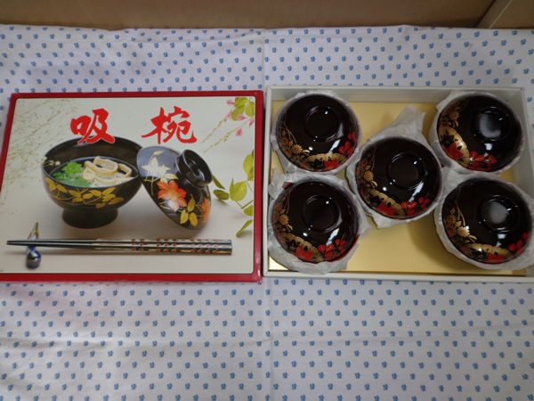 商品説明 新品★会津塗、蓋付き吸物椀★5客組