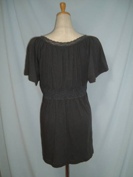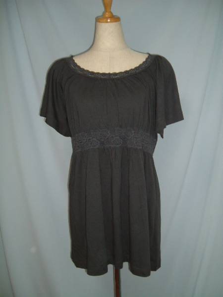 ■ユニクロ■レース付きグレーのふんわり半袖チュニックL