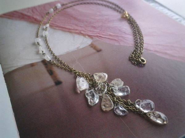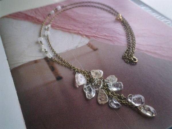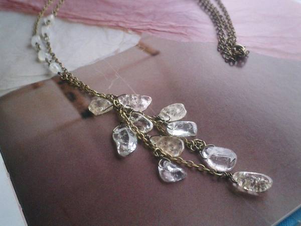 シモーヌの宝石箱・・シリーズです♪春色の虹・・クラックル水晶とムーンストーンのネックレスです♪本体には6ミリから9ミリ位のラフカットのムーンストーン、トップには6ミリから18ミリ位までのタンブルのクラックル水晶を集めました♪淡いやさしい水色やオレンジ、イエロー、ピンクの水晶とムーンストーンのタンブルがひっそりロマンチックしています♪長さは76センチ+アジャスター12センチで最長88センチ位です♪トップは10センチ位です♪お揃いのブレスレットも出品しています♪シンプルで飽きのこないいつまでも着けられるデザインを考えて作りました!ハンドメイドをご理解頂いてノークレーム、ノーリターンでお願いします