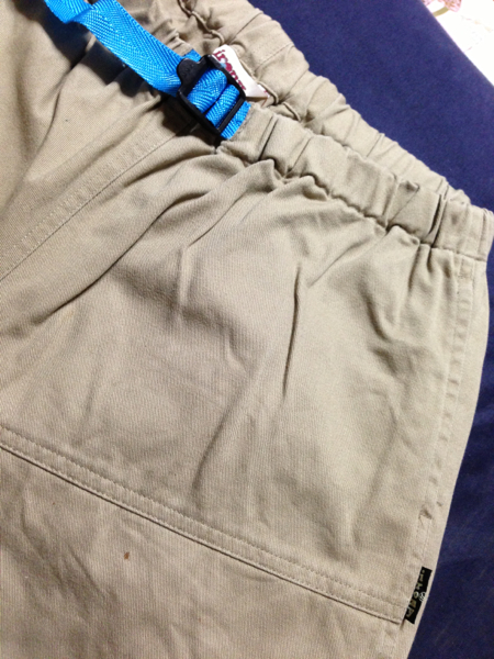 ウエストはゴムとベルト。ポケットは両サイドに有り。