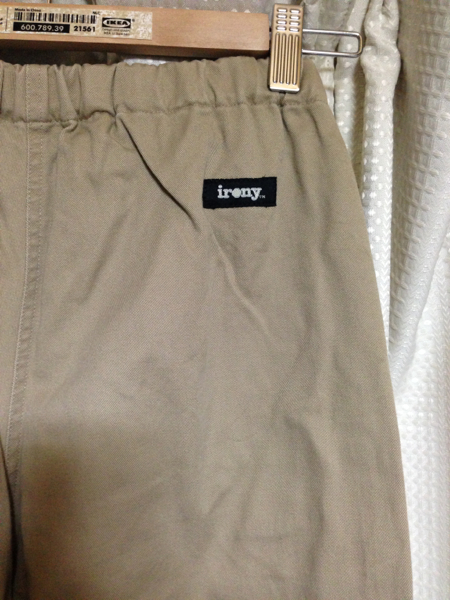 ポケットと後ろにアイロニーのタグが有ります。可愛いです。