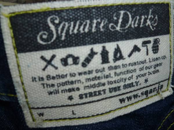 sqareらしく細かい所にまでこだわったデニムになり、前、後ろポケットはデニムとレザーの切り替えし、写真ではわかりつらいですが後ろ、前ともにポケットの上にはスカルのリベットが打ち込まれステッチは黄色と細かい所にまで手の込んだジーンズになります。