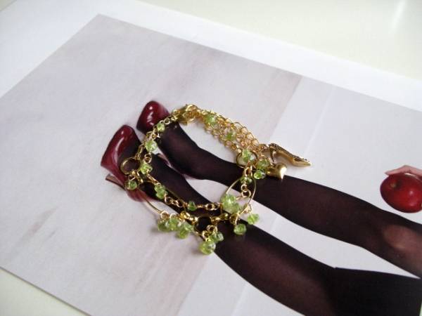 パリの衣裳部屋・・シリーズです♪夜会服の宝石・・繊細なエメラルドグリーンのペリドットのブレスレット2点セットです♪暗緑色のペリドットが可憐な表情です♪真ん中のブレスレットはデザインチェーンに5ミリ位のさざれのペリドットを合わせました♪長さは全長23センチ位で調節自由です♪右端のブレスレットは5ミリ位のさざれのペリドットを華奢なチェーンに繋いで合わせやすいデザインです♪長さは全長23センチ位で調節自由です♪それぞれ単品やネックレスやピアスも出品しています♪シンプルで飽きのこないいつまでも着けられるデザインを考えて作りました!ハンドメイドをご理解頂いてノークレーム、ノーリターンでお願いします