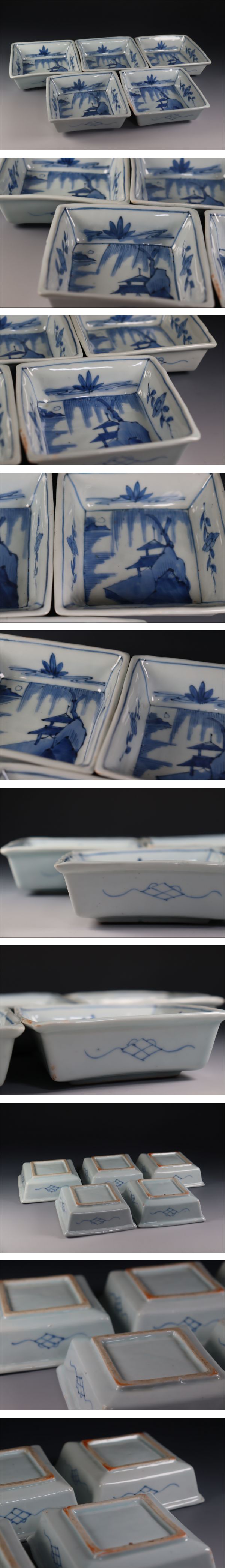 | 商品説明 | 商品名:蔵出し品 古伊万里 時代 染付 角皿 5枚 付属品:なし。 サイズ:高さ4,5cm、口径12,8cm、高台7,4cm。 状態:経過のスレがございます。 |