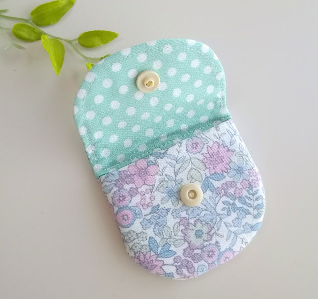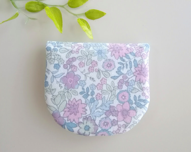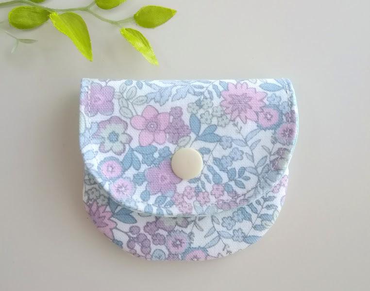 ハンドメイド〈フラップタイプ〉ミニポーチ やさしい色合いの小花柄*tiny flower  (9×8.5)※ピルケ-ス/コインケ-ス