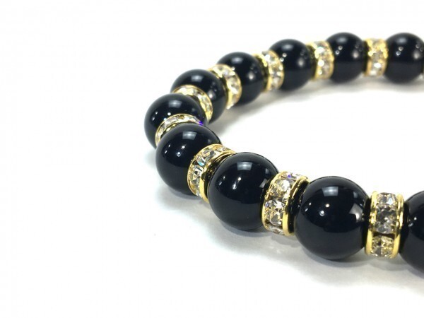 こちらは、10mm玉のオニキスを使用したパワーストーンブレスレットです。間にはロンデルを挟み高級感あるブレスレットに仕上げています。石大きさは腕にも馴染みやすいように10mm玉を使用して、サイズは内径約18cmです。(サイズ調節も無料で承っています。サイズ変更の場合は落札後、取引ナビにてご一報くださいませ。) 数に限りがございますので気になる方はお早めにどうぞ。
