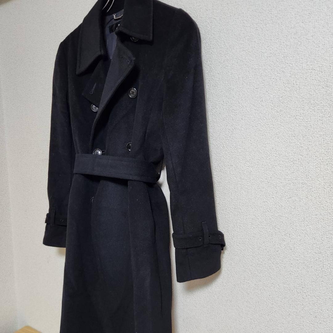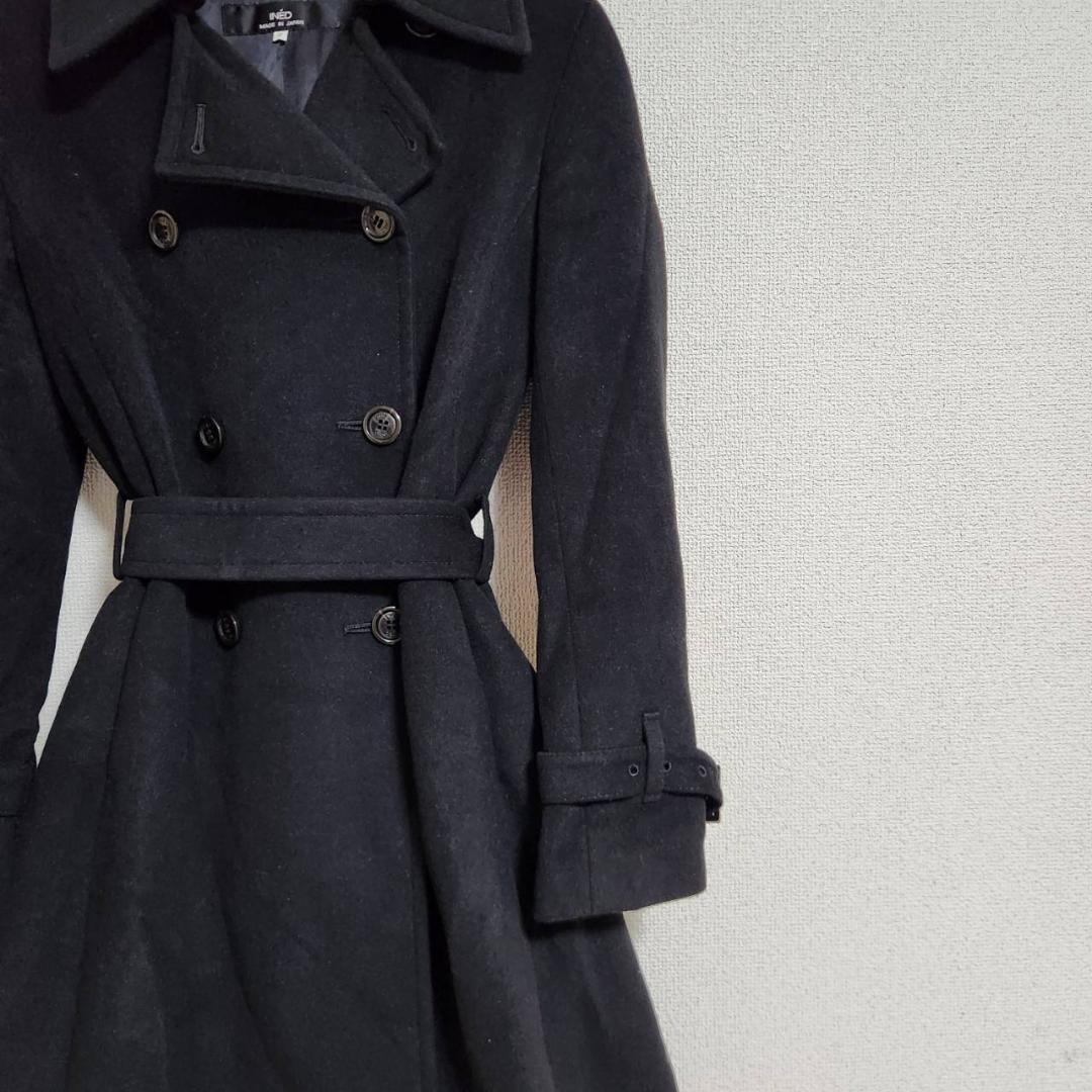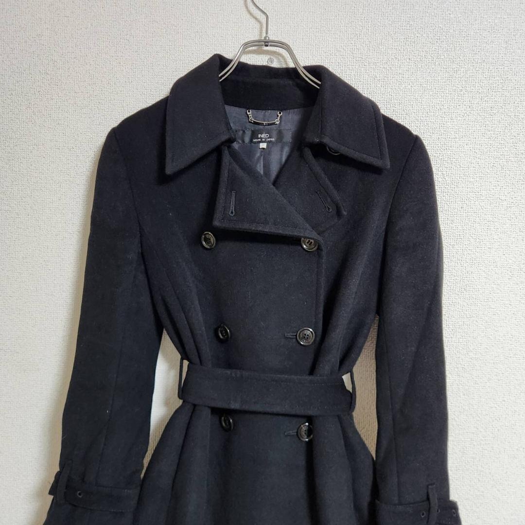 上質なアンゴラ混ウール素材を使用した、INED(イネド)の黒トレンチコートです。