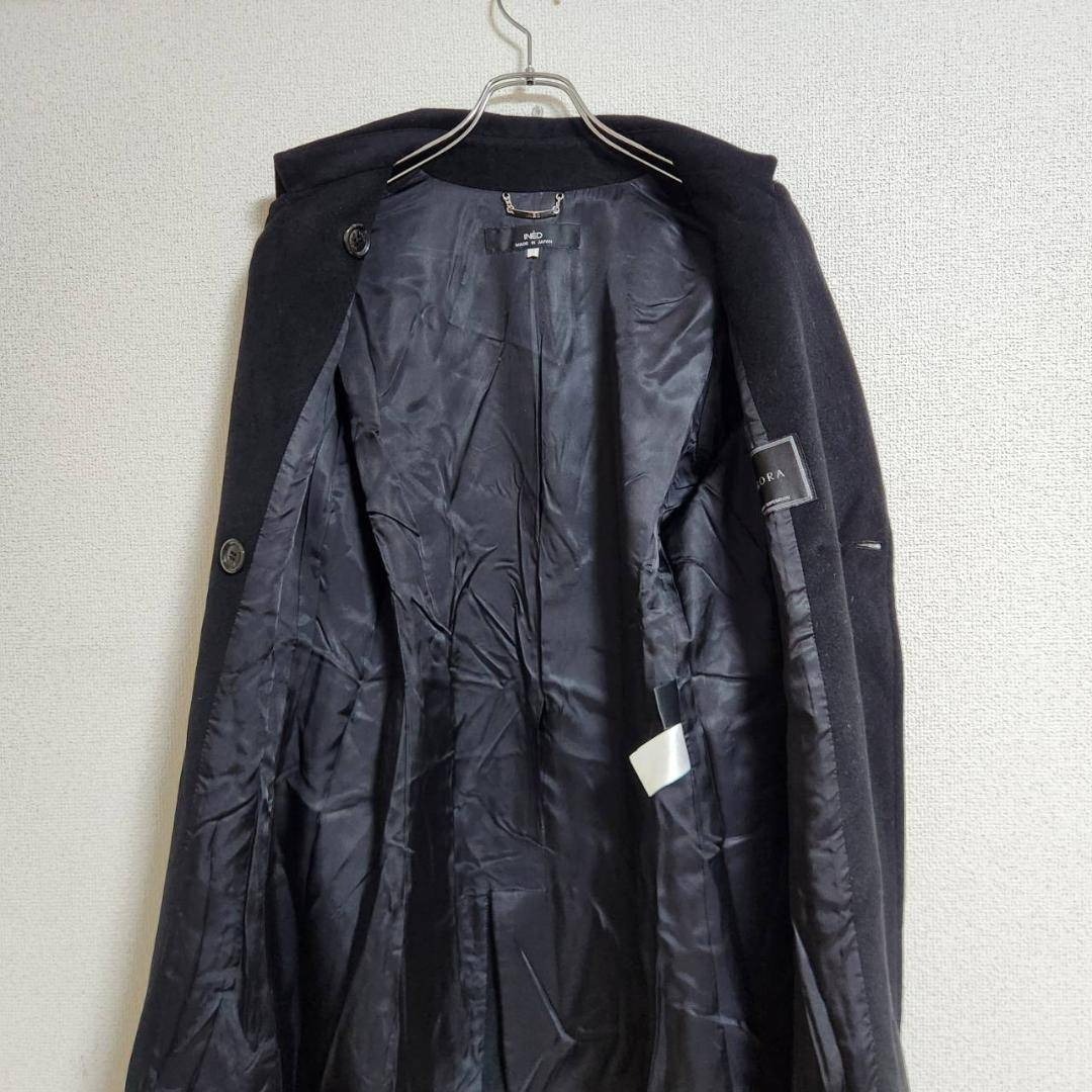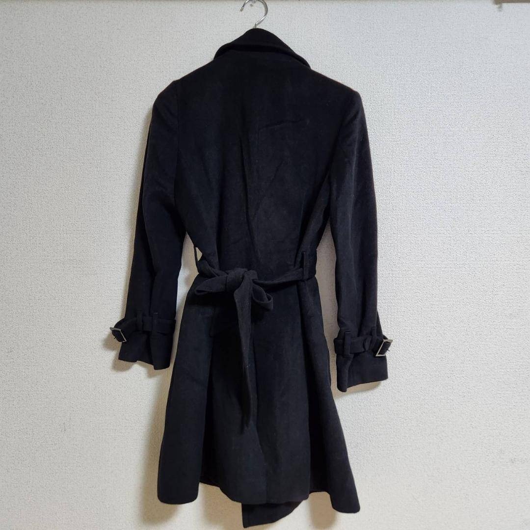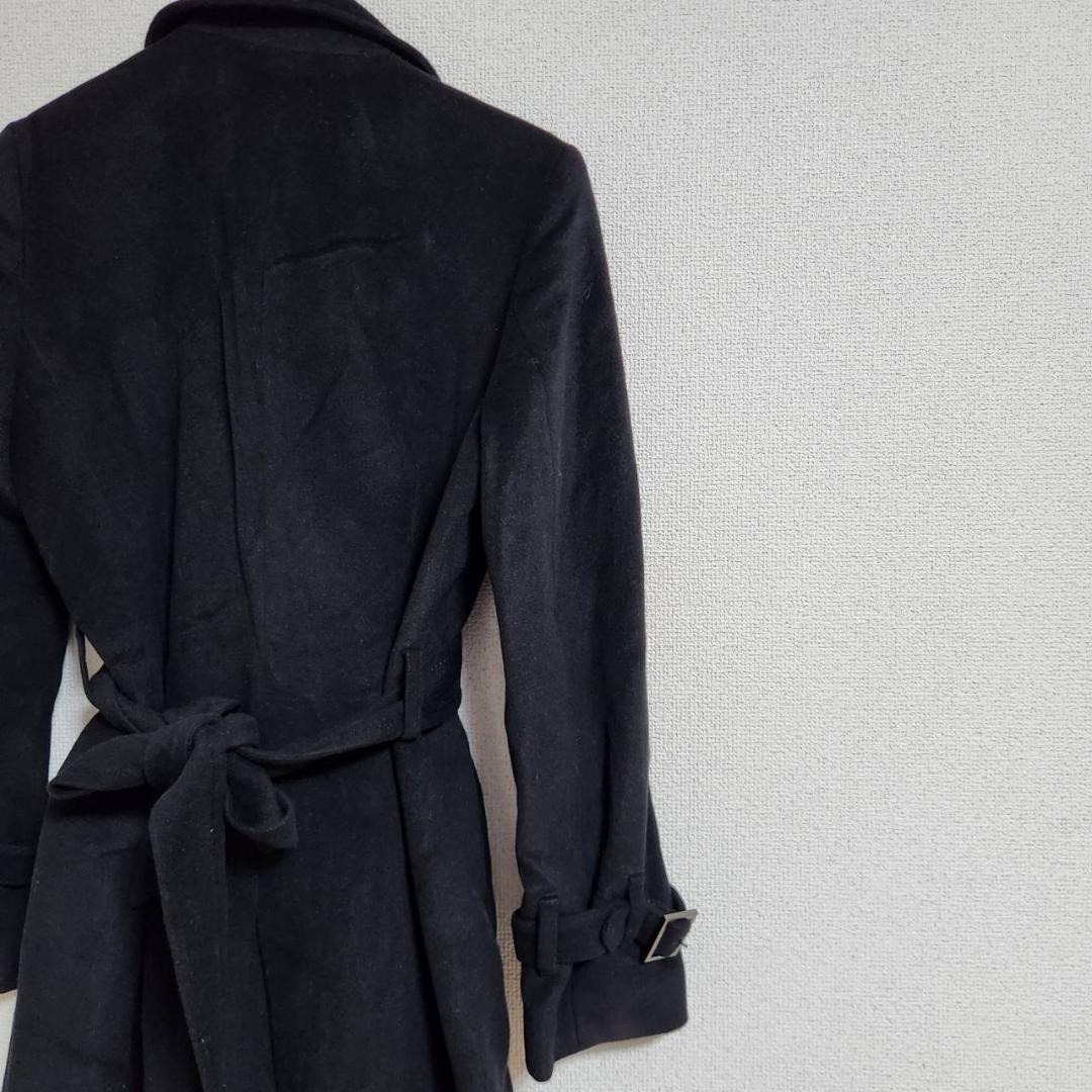 上質なアンゴラ混ウール素材を使用した、INED(イネド)の黒トレンチコートです。