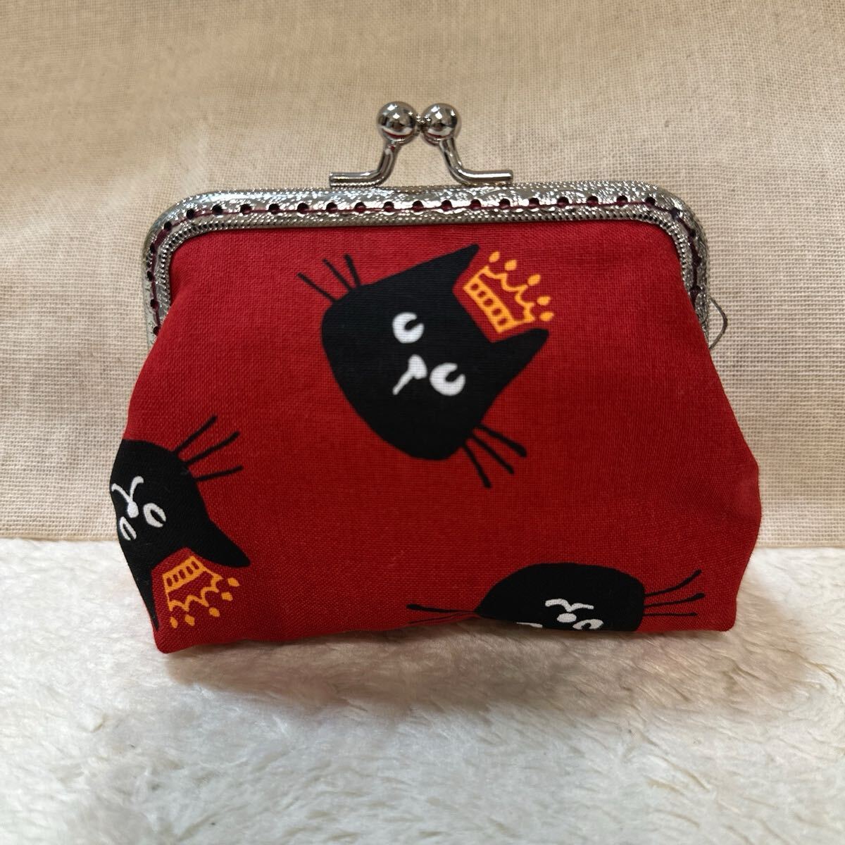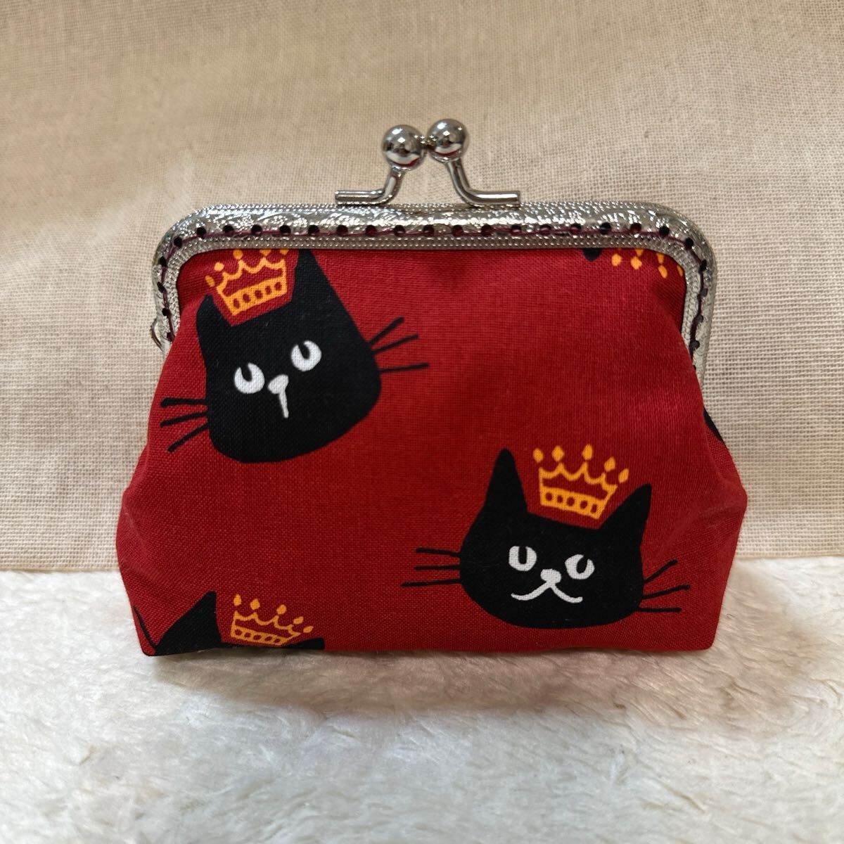 ハンドメイド☆ふんわり王冠猫ちゃん☆がま口、小銭入れ、小物入れ、リップ入れ、お薬入れ他~