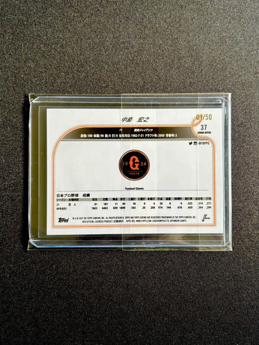 50枚限定 中島宏之 ファーストナンバー ゴールドリフラクター 2022 TOPPS NPB CHROME #37 読売ジャイアンツ