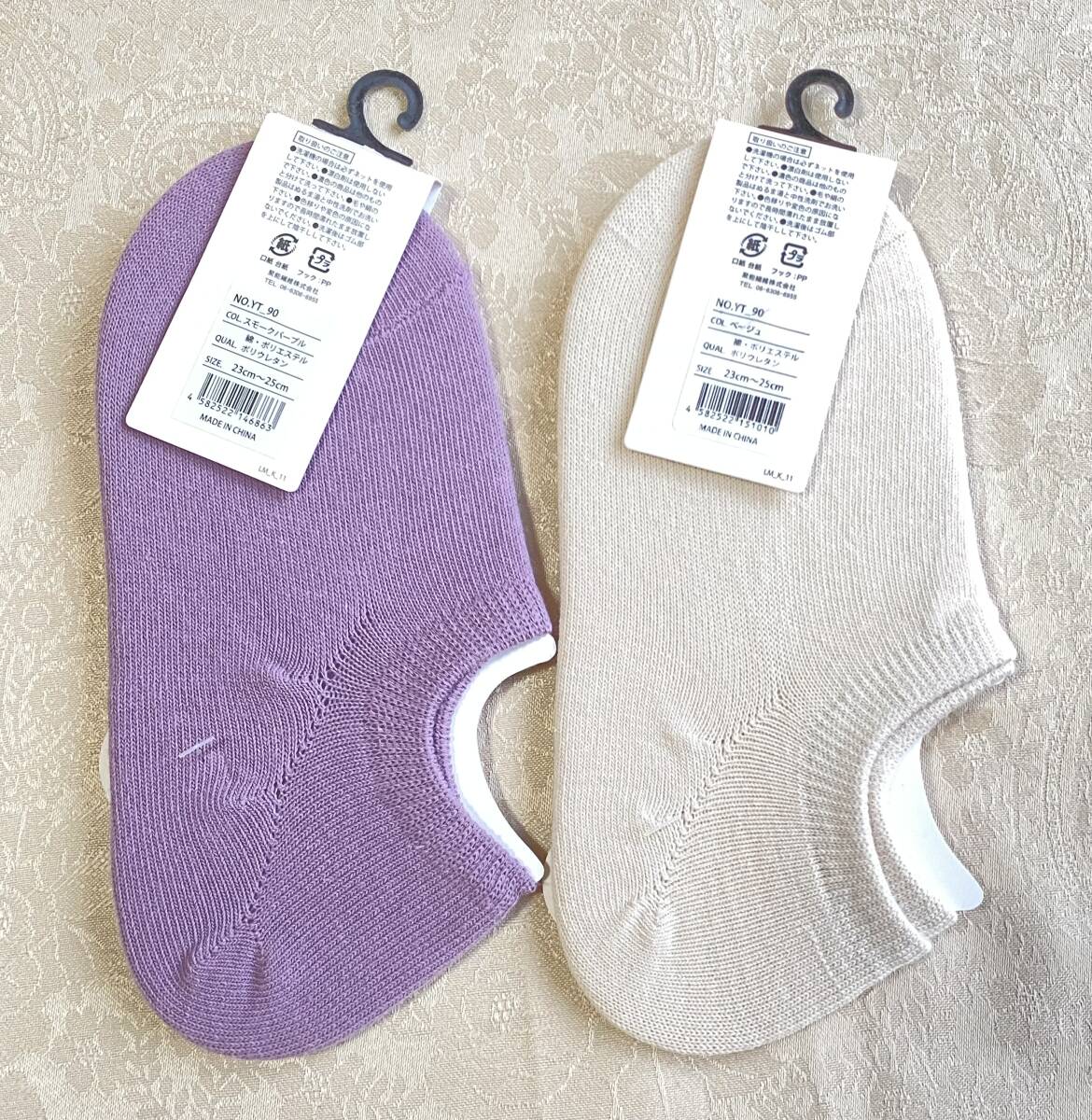 【新品】【送料込み】【23~25】ショートソックス色違い2足セット スモークパープル・ベージュ