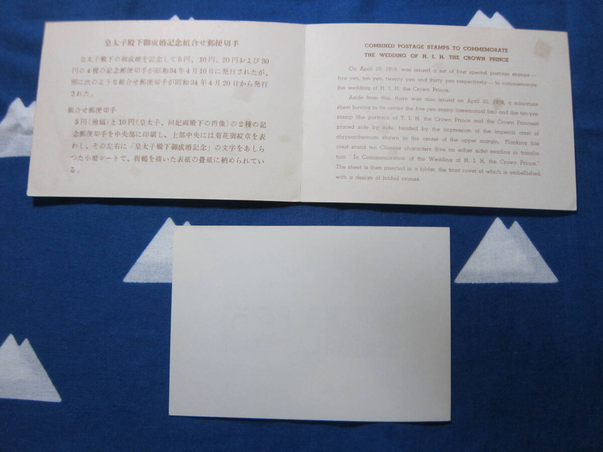 記念切手 皇太子殿下 御成婚記念 昭和34年 小型シート 未使用品 同封可