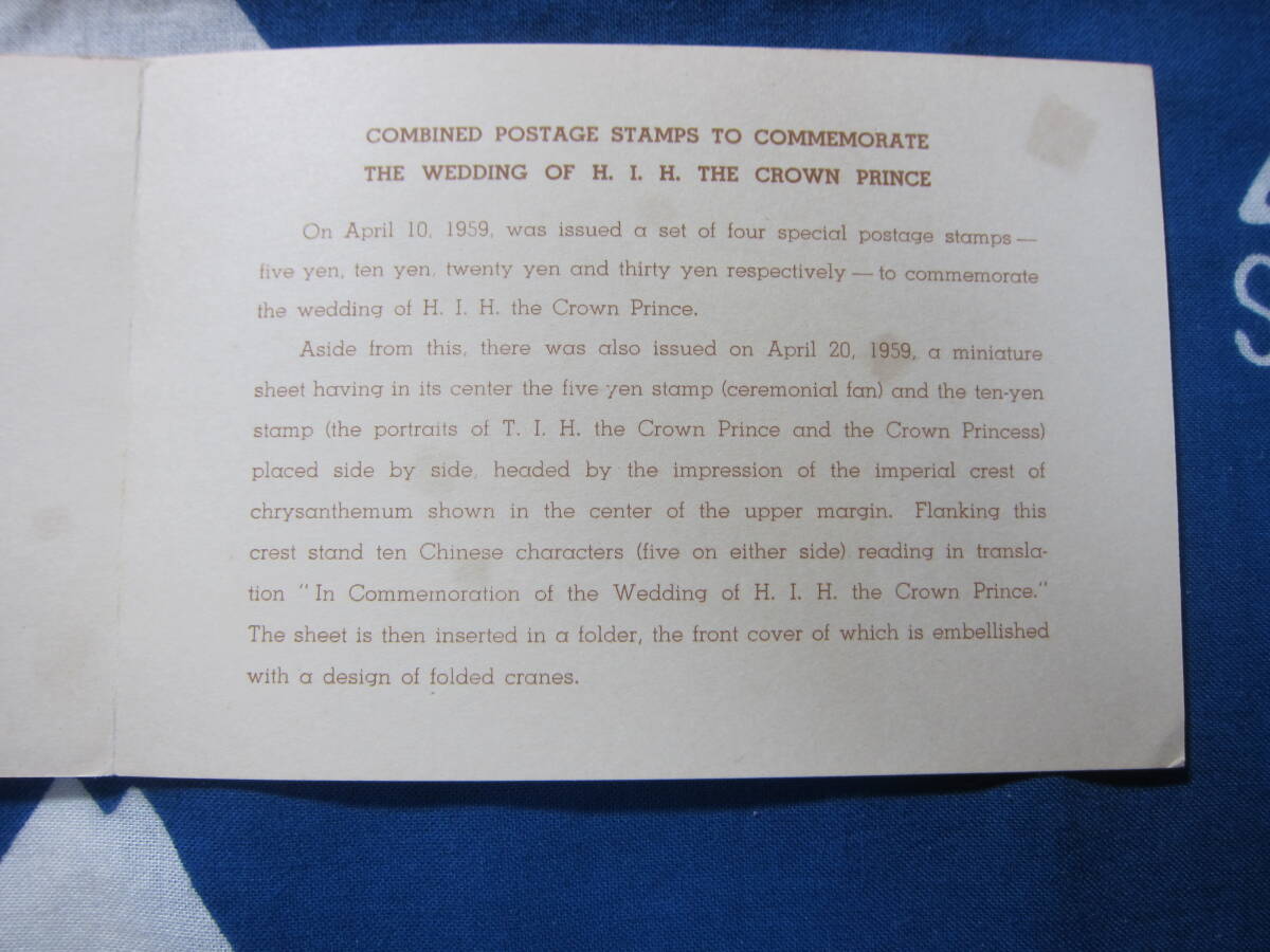 記念切手 皇太子殿下 御成婚記念 昭和34年 小型シート 未使用品 同封可