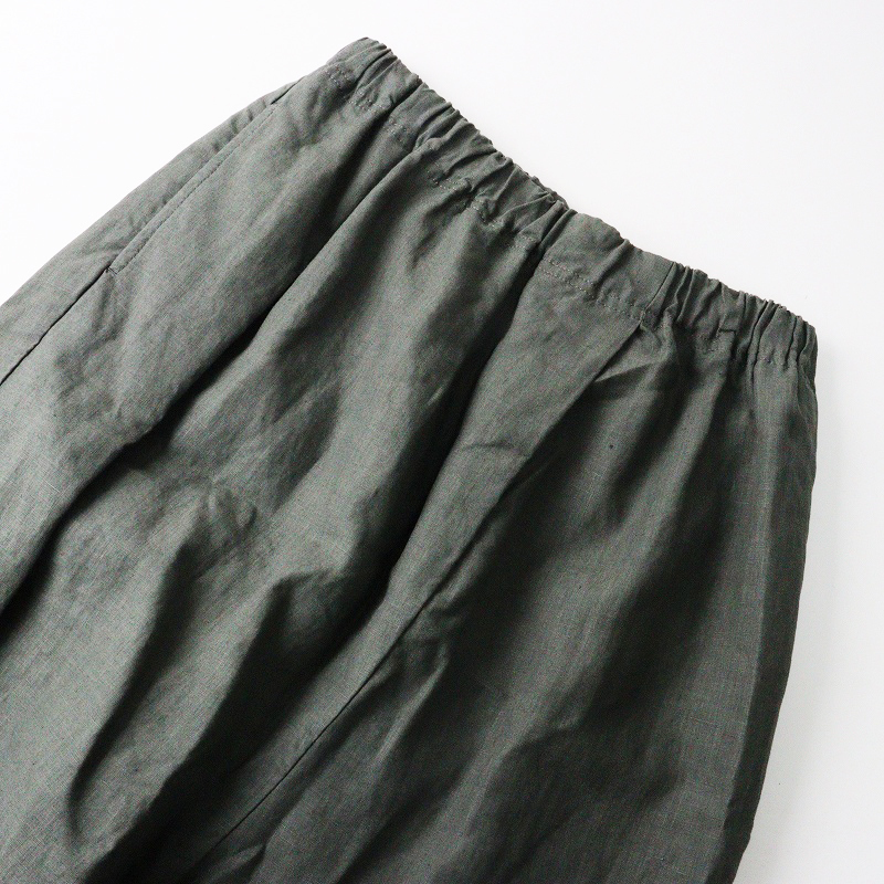 トラバイユマニュアル TRAVAIL MANUEL リネン アシンメトリー タック テーパードパンツ M|グリーン ボトムス【2400014647884】