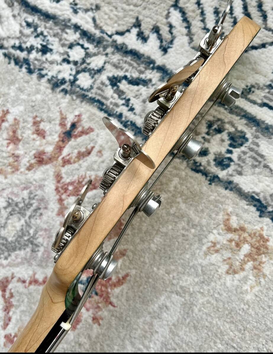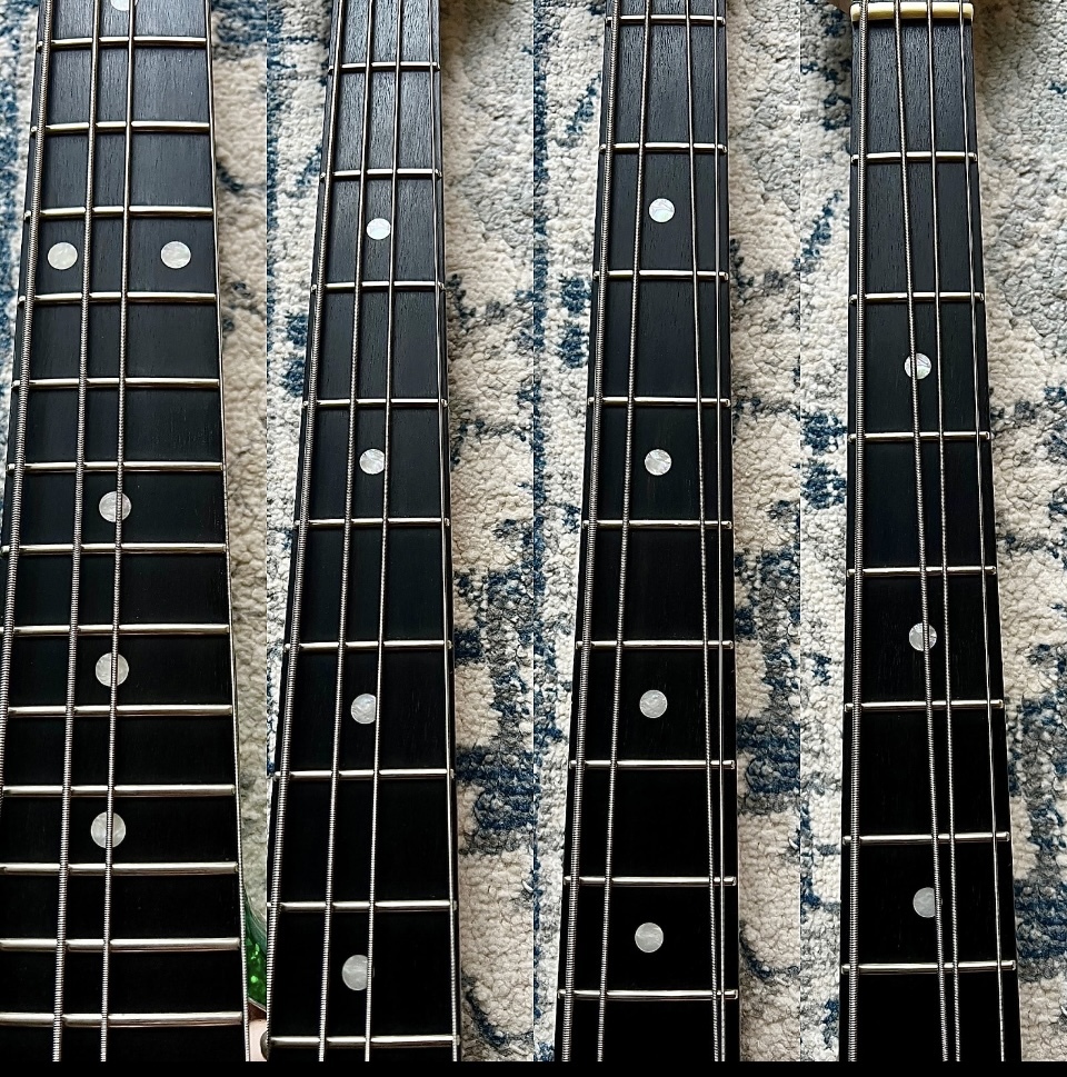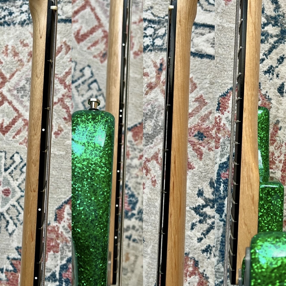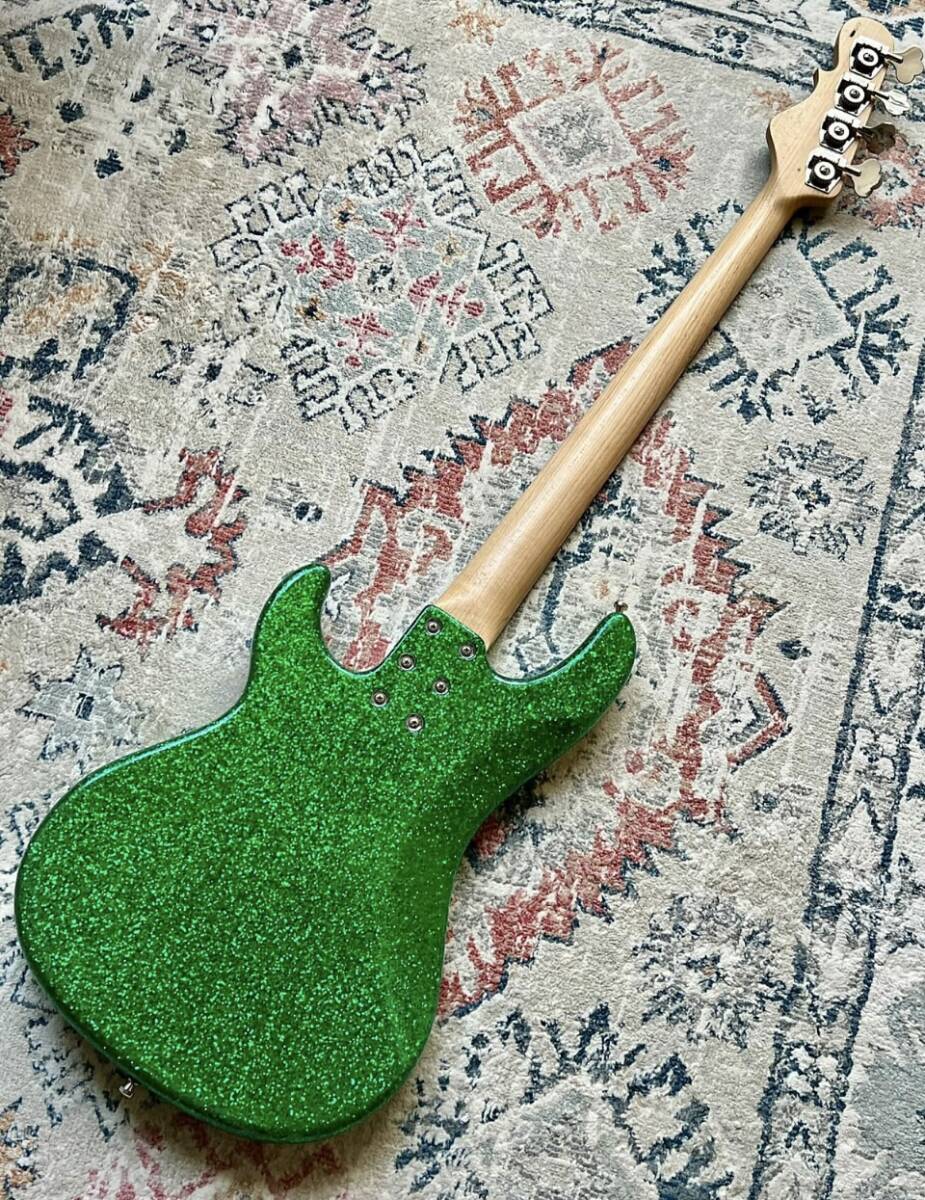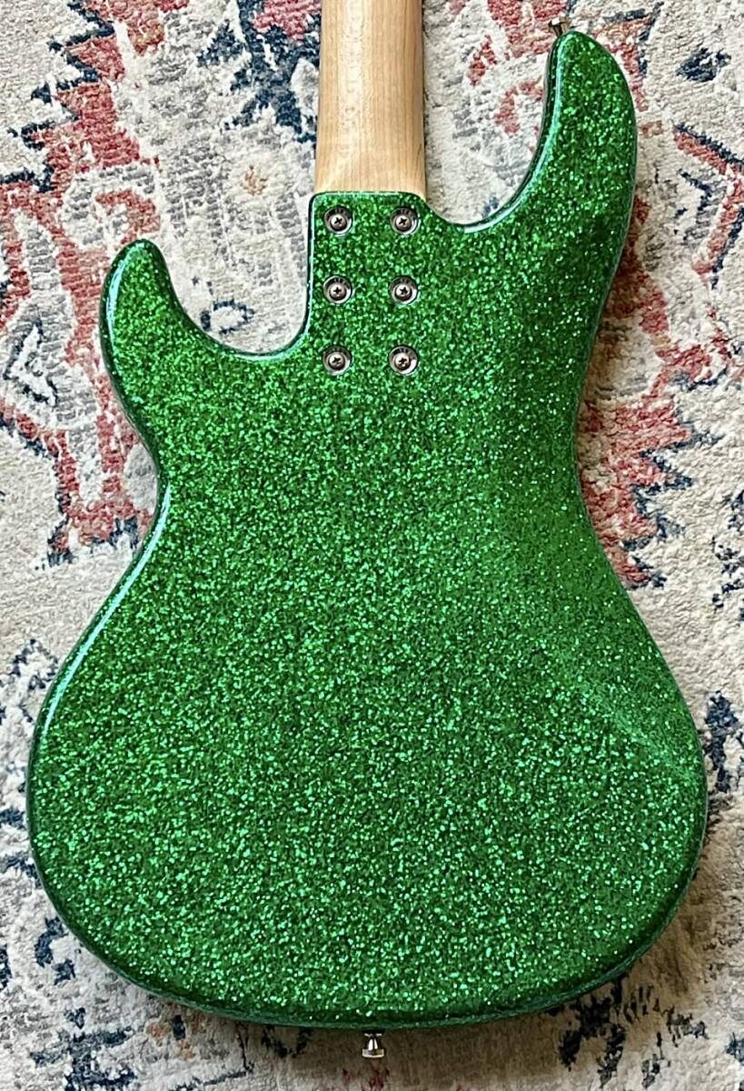 2010 G&L USA SB-2 Bass の出品になります。色は希少な グリーン メタル フレークのマッチング ヘッド、ミラーガードです。パシブのP & J pu でコントロールはvol & volです、Hipshot tuning pegs 、ノブが1つスカルノブに交換されております(オリジナル ノブは有りません)。多少傷ありますが、弾きやすく、とても良いコンデションを保ってると思います。オリジナルG&Lハードケース付きです。中古楽器なのでNC/NRでお願いします。