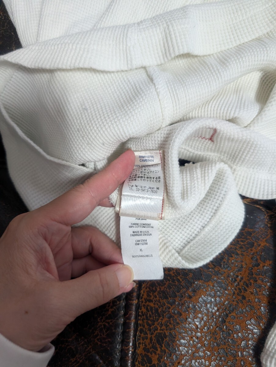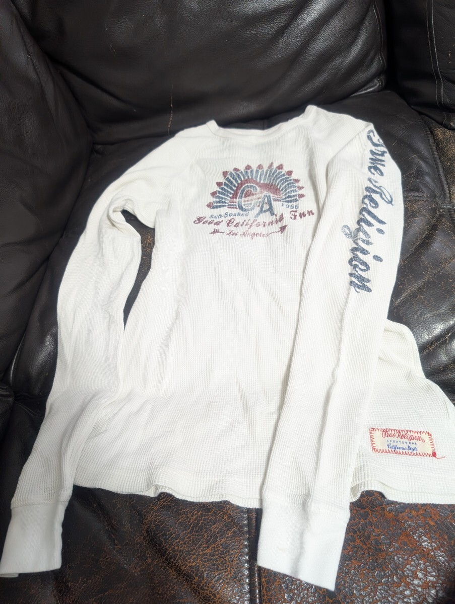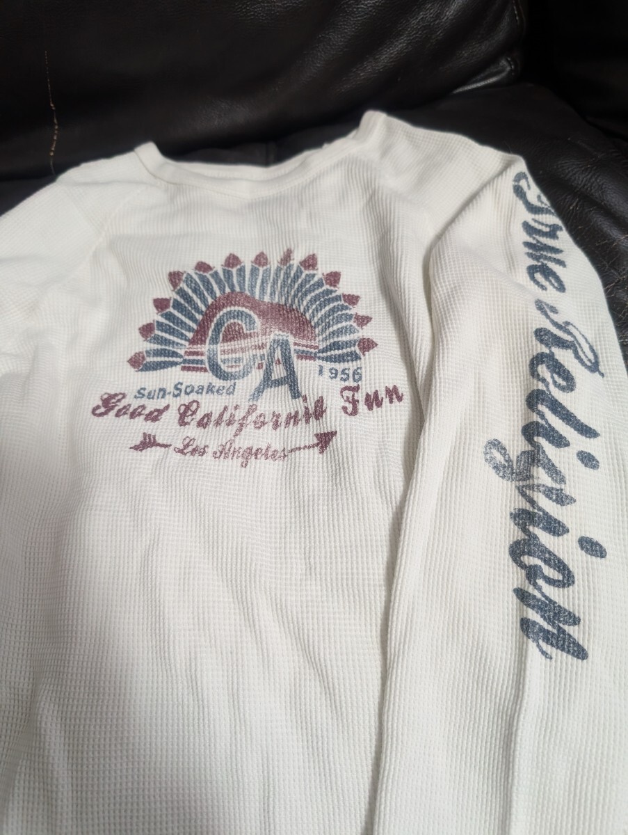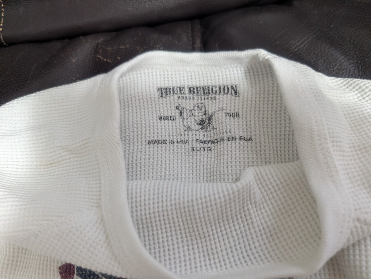 美品!TRUE RELIGION☆アメリカ製、ワッフル地長袖Tシャツ、サイズXL、16歳、女性でも!になります。