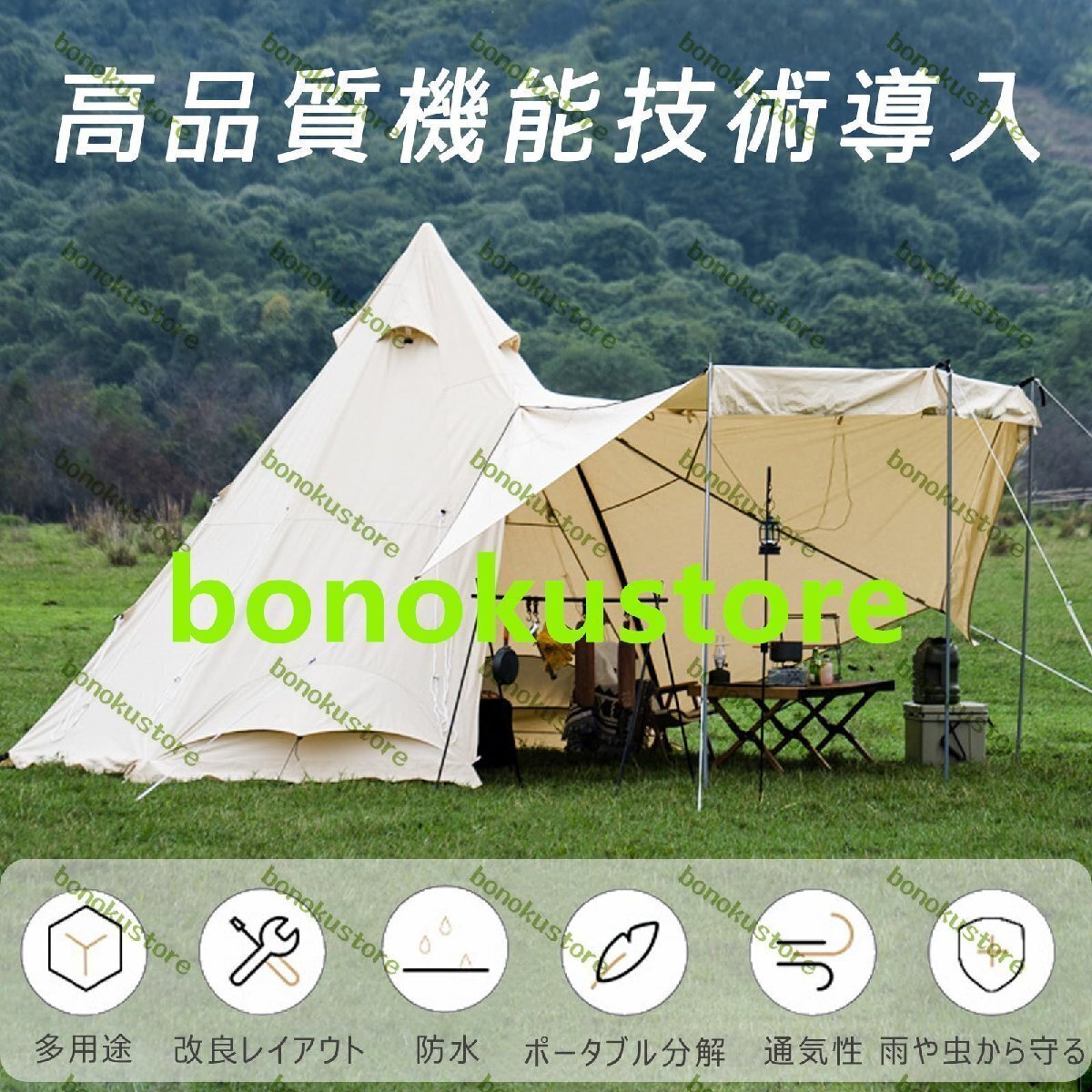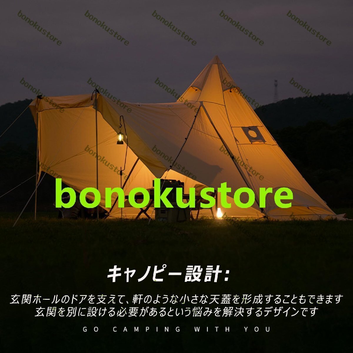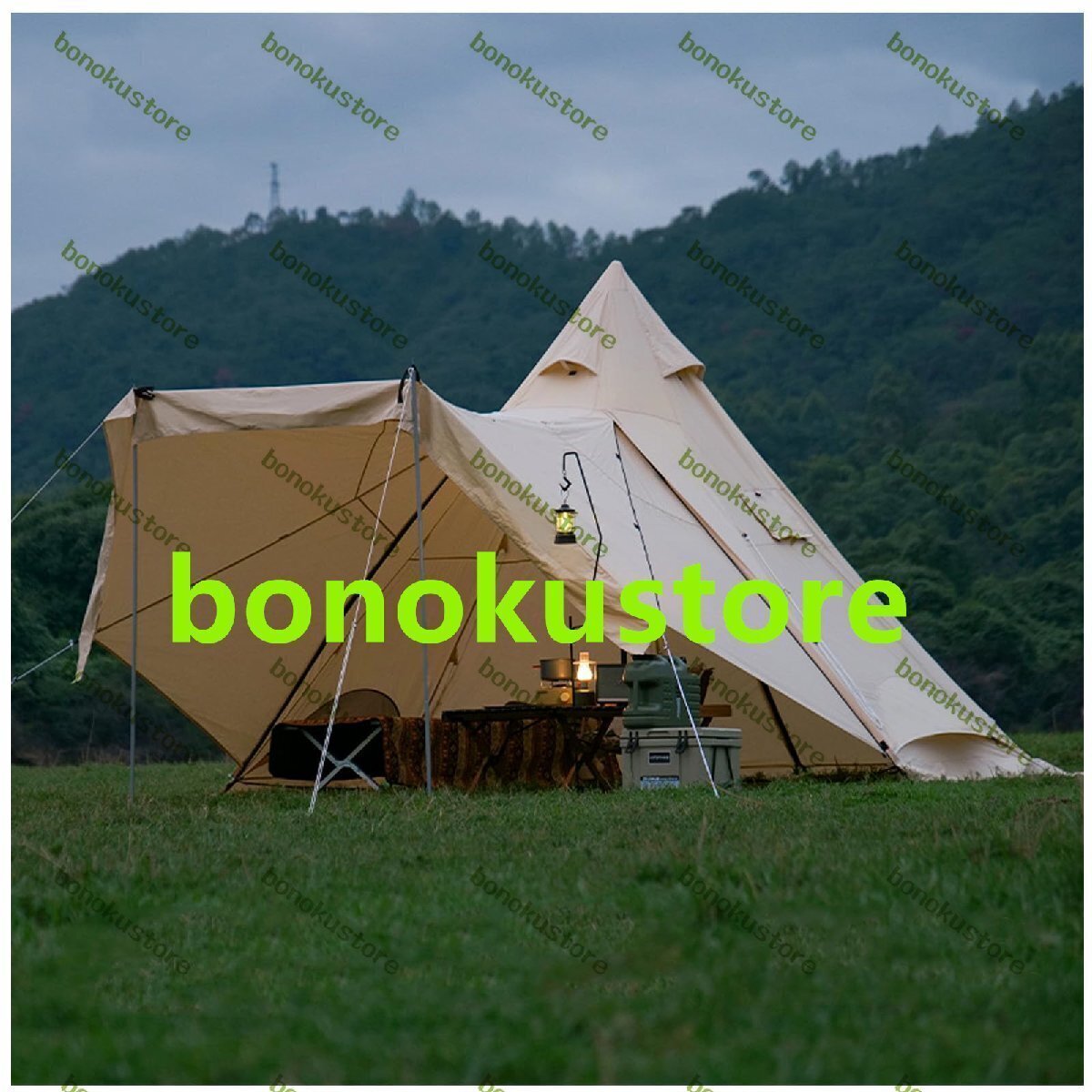 キャノピーテント 6-8人用 前室付き ワンポールテント 大型 広い 屋外 キャンプテント 設営簡単 UVカット 防水 耐水圧?3000mm 煙突穴付き アウトドア パークテント グランピング ツーリングテント お花見 おしゃれ