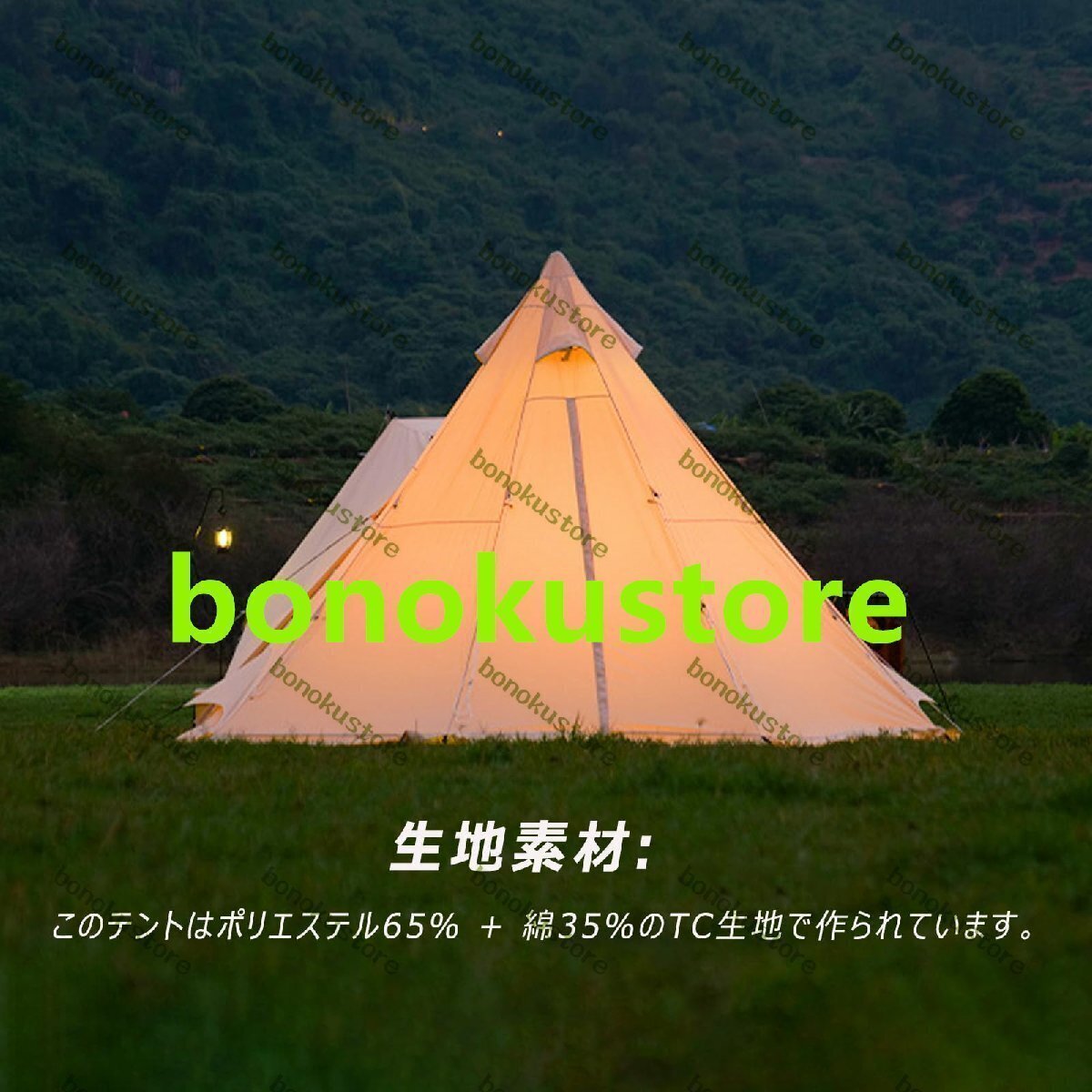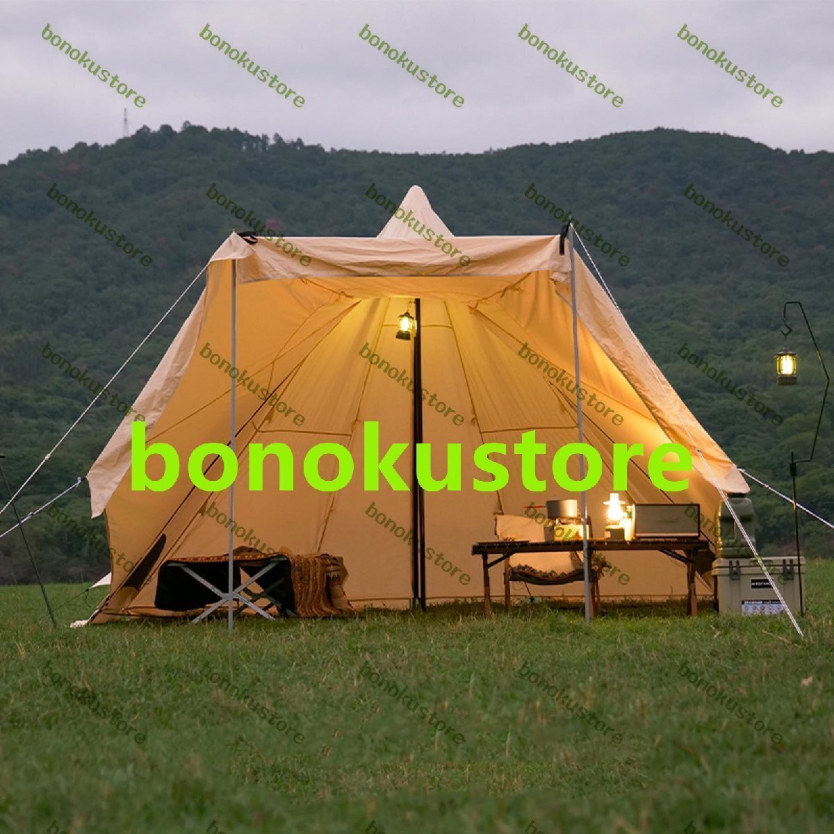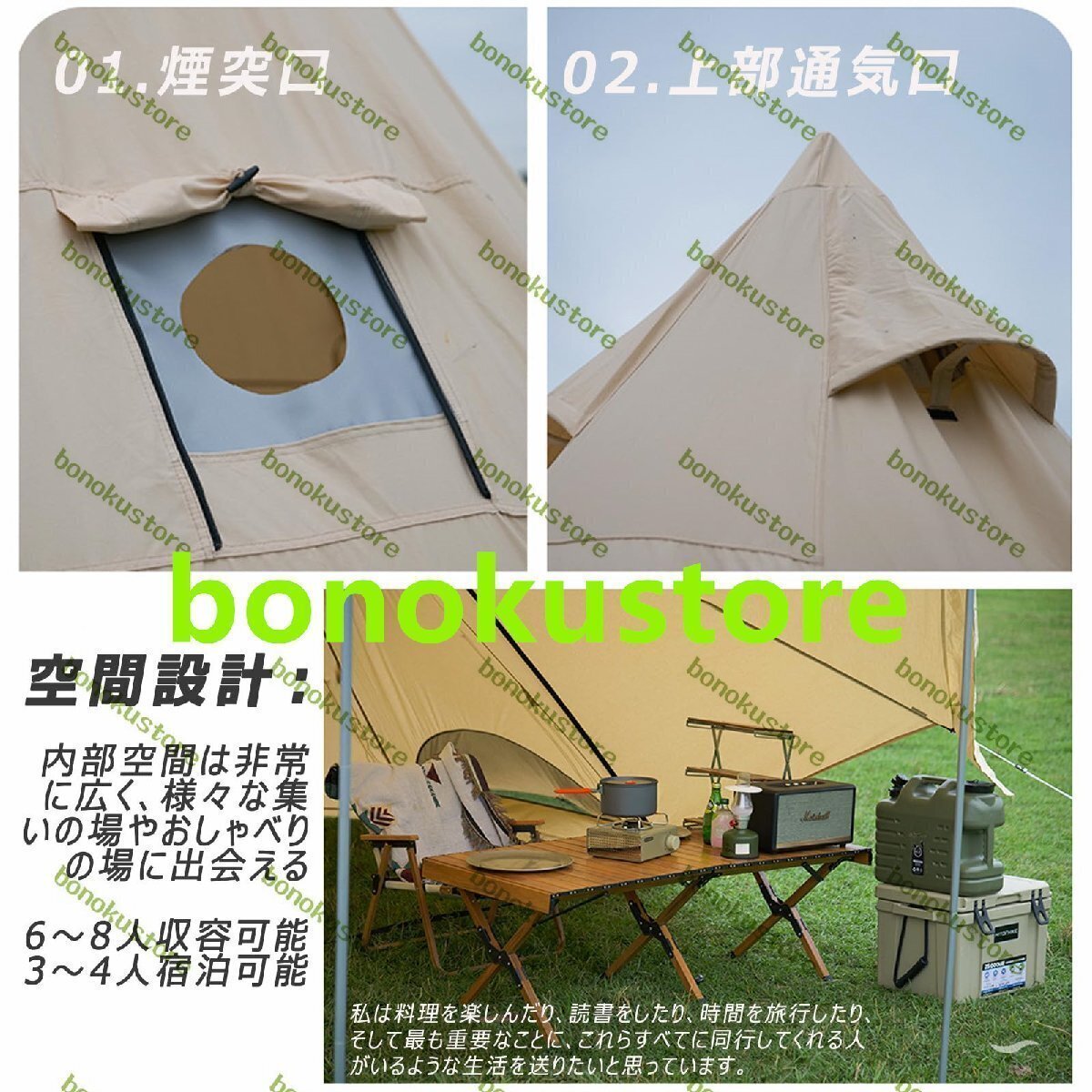 キャノピーテント 6-8人用 前室付き ワンポールテント 大型 広い 屋外 キャンプテント 設営簡単 UVカット 防水 耐水圧?3000mm 煙突穴付き アウトドア パークテント グランピング ツーリングテント お花見 おしゃれ